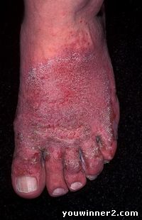 может быть обусловлен Epidermophyton flocossum, намного реже - дрожжеподобными